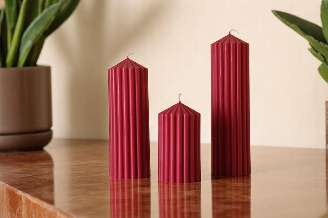 Elegant pillar candles crafted from premium soy wax, designed to bring warmth, sculptural beauty, and a refined atmosphere into your home.
