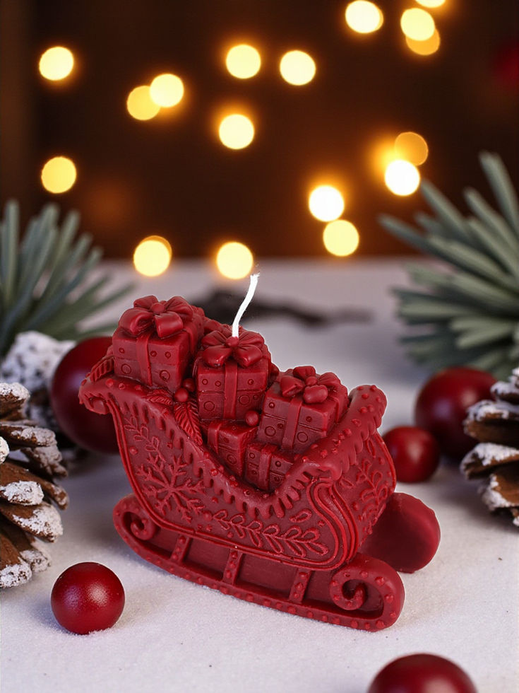 Add a magical touch to your holiday décor with our Christmas Sleigh Candle, beautifully hand-poured in the shape of Santa’s sleigh filled with presents. 🎁🎄